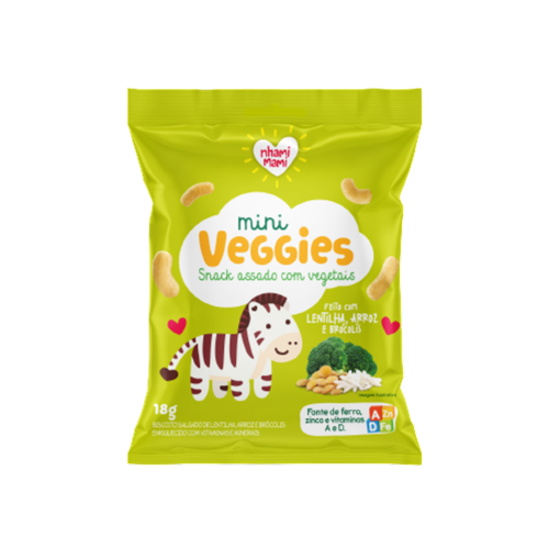 Feito com ingredientes 100% naturais, integrais e sem gordura trans ou aditivos artificiais, o Snack Infantil Mini Veggies Lentilha e Brócolis Nhami Mami é perfeito para um lanchinho saudável e equilibrado.
