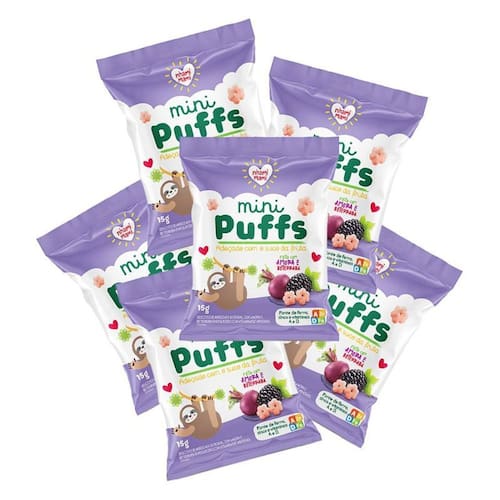 Kit 6X: Snack Infantil Mini Puffs Amora e Beterraba Nhami Mami 15g O Snack Infantil Mini Puffs Amora e Beterraba Nhami Mami é elaborado em conjunto com uma nutricionista infantil. Feito com poucos ingredientes, sem aditivos artificiais, equilibrados para fornecer energia e vitaminas para os pequenos.