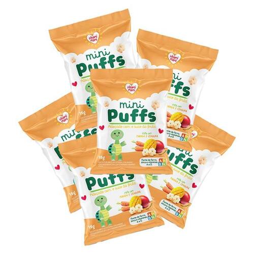 Kit 6X: Snack Infantil Mini Puffs Manga e Cenoura Nhami Mami 15g O Snack Infantil Mini Puffs Manga e Cenoura Nhami Mami é elaborado em conjunto com uma nutricionista infantil. Feito com poucos ingredientes, sem aditivos artificiais, equilibrados para fornecer energia e vitaminas para os pequenos.