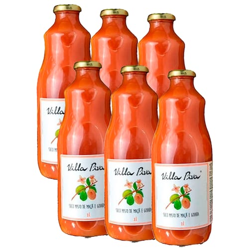 O Suco de Goiaba Integral Sem Açúcar Villa Piva é produzido somente com 2kg de goiaba por litro, sem elementos artificiais, corantes, açúcares ou conservantes.