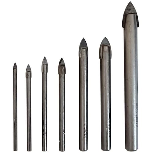 Kit com 7 Brocas para Furar Vidro de 3 a 12mm Porcelanato Cerâmica Metal Duro Profissional HTOMBroca para Furar Vidro HTOM Indicada para furação de: vidros exceto vidros temperados , azulejos, pastilhas, cerâmicas, louças e porcelanas.- Marca: HTOM- 1 Broca para Vidro 3mm x 60mm- 1 Broca para Vidro 4mm x 60mm- 1 Broca para Vidro 5mm x 64mm- 1 Broca para Vidro 6mm x 64mm- 1 Broca para Vidro 8mm x 76mm- 1 Broca para Vidro 10mm x 76mm- 1 Broca para Vidro 12mm x 100mm- Ponta de metal duro resistente- Indicada para furação de: vidros exceto vidros temperados , azulejos, pastilhas, cerâmicas, louças e porcelanas.- Para uso em furadeiras- Garantia de qualidade