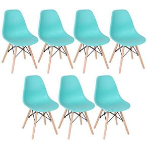 Kit 7 Cadeiras Charles Eames Eiffel Dsw Com Pés De Madeira Clara Verde Tiffany