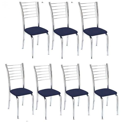 Kit 7 Cadeiras De Jantar Lara Cromada Para Cozinha Assento Corino Azul Marinho - Aurora Line Cadeira Para Cozinha Lara - Aurora Line A Cadeira Lara é a opção ideal para sua casa. Se você está procurando por uma cadeira de jantar que seja perfeita para a sua cozinha, com estilo industrial, resistente e confortável, a Cadeira Lara é a escolha certa. Seja para casas, apartamentos ou áreas gourmet, essa cadeira vai se encaixar perfeitamente no seu espaço. Com um design moderno e elegante, a Cadeira Lara combina perfeitamente com diferentes estilos de decoração. Se você gosta de um ambiente mais industrial, essa cadeira vai trazer um toque de personalidade para a sua casa. Além disso, ela também é versátil o suficiente para se adaptar a outros estilos, como o contemporâneo ou o rústico.Além do design, a Cadeira Lara também se destaca pela sua resistência. Feita com materiais de alta qualidade, ela é capaz de suportar o uso diário sem perder a sua durabilidade. Se você tem uma família grande ou adora receber amigos para jantar, essa cadeira é perfeita para você. Ela vai garantir conforto e segurança para todos.Outro ponto importante da Cadeira Lara é o seu conforto. Com um assento acolchoado e encosto ergonômico, essa cadeira proporciona uma experiência agradável durante as refeições. Você vai poder desfrutar de momentos de descontração e prazer à mesa, seja para um jantar em família ou um encontro com amigos.