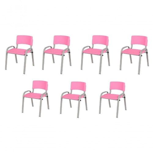 Kit 7 Cadeiras Infantil Iso, Escola, Base Cinza- Rosa
