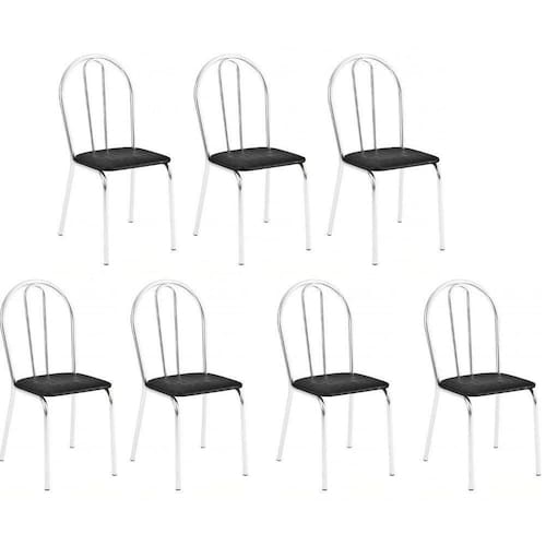 Kit 7 Cadeiras Lisboa Cromada Para Cozinha Ou área Gourmet-assento Sintético Preto