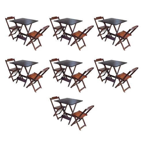 Kit 7 Conjuntos De Mesa Dobravel Com 2 Cadeiras De Madeira 70x70 Para Restaurante E Bar - Imbuia