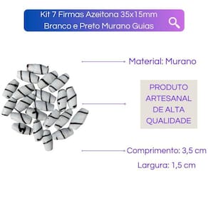 Kit 7 Firmas Azeitona 35x15mm Branca Preto Murano Guias Transforme seus projetos em obras de arte com o Kit 7 Firmas de Azeitona em Murano Branco e Preto
