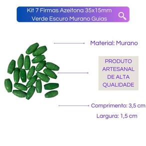 Kit 7 Firmas Azeitona 35x15mm Verde Escuro Murano Guias Transforme seus projetos em obras de arte com o Kit 7 Firmas de Azeitona em Murano Verde Escuro
