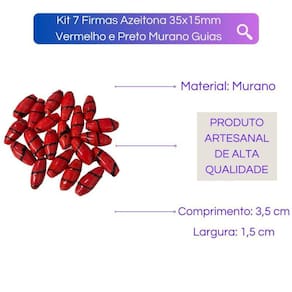 Kit 7 Firmas Azeitona 35x15mm Vermelho e Preto Murano Guias Transforme seus projetos em obras de arte com o Kit 7 Firmas de Azeitona em Murano Vermelho e Preto