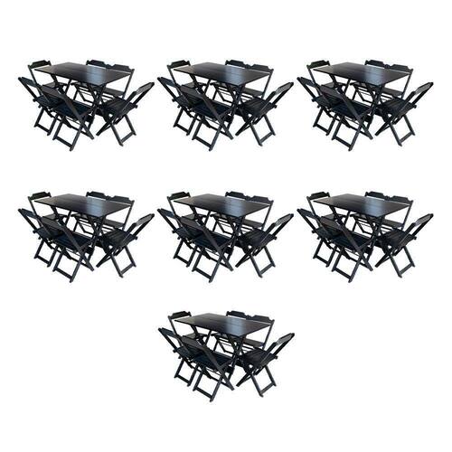 Kit 7 Jogos De Mesa Dobravel Com 6 Cadeiras De Madeira 120x70 Para Restaurante E Bar - Preto