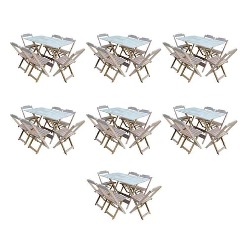 Kit 7 Jogos De Mesa Dobravel Com 6 Cadeiras De Madeira 120x70 Para Restaurante E Bar - Sem Pintura