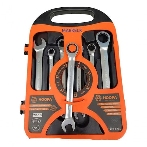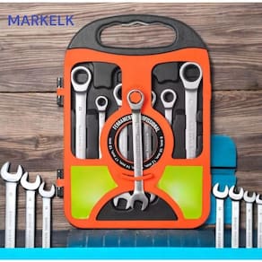 JOGO DE CHAVES COMBINADA IDEA COM CHAVE CATRACA Jogo de chaves combinadas com catraca articulada, composto por um estojo plástico com 7 peças. TAM: 8 mm, 10 mm, 12 mm, 13 mm, 14 mm, 17 mm e 19 mm