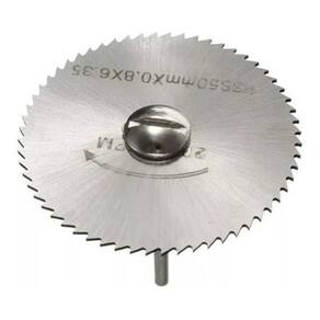 Especificação: Material: HSS Cor: Prata Maxima rotação : 20.000 RPM Espessura da haste: 3.175 mm, comprimento 50mm Diametro do furo no disco 6,35mm Espessura do disco 1,0mm