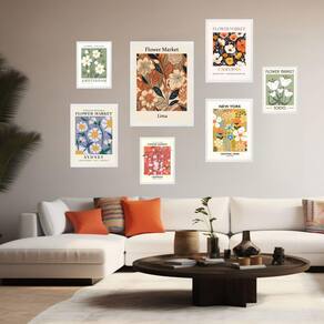 Kit 7 quadros decorativos flower market - com vidro Moldura: madeira branca Informações do produto tire todas as suas dúvidas no descritivo abaixo: decoração para quarto, sala, cozinha, escritório, área gourmet e muito mais. Chega de paredes vazias medidas - kit composto por 7 quadros, sendo 3 quadros com medida 18x24cm, 3 quadros com 24x33cm e 1 quadro com medida 33x45cm. Material do papel - papel fotográfico brilhante de altíssima resolução acabamento - todos os quadros são acompanhados de vidro para proteção da imagem. - moldura em madeira maciça na cor preta ou branca conforme produto escolhido e pendurador . - os quadros são embalados de forma segura com plástico bolha com camada dupla de acordo com o tamanho dos quadros. - de 3 meses. Meu quadro chegou. Como posso fixá-lo Você precisa apenas de um martelo e um prego, pois os quadros já vão acompanhados de penduradores. Esta é a forma mais indicada. Como posso limpar meu quadro A limpeza é feita como um móvel comum da sua casa. Apenas um pano seco ou espanador são suficientes para tal Ean: 7896025020467