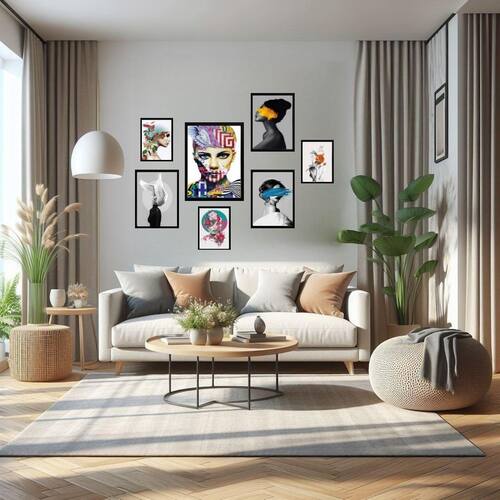 Kit 7 quadros decorativos mulheres arte surrealismo Moldura: madeira branca Informações do produto tire todas as suas dúvidas no descritivo abaixo: decoração para quarto, sala, cozinha, escritório, área gourmet e muito mais. Chega de paredes vazias medidas - kit composto por 7 quadros, sendo 3 quadros com medida 18x24cm, 3 quadros com 24x33cm e 1 quadro com medida 33x45cm. Material do papel - papel fotográfico brilhante de altíssima resolução acabamento - todos os quadros são acompanhados de uma película de acetato para proteção da imagem. - os quadros são embalados de forma segura com plástico bolha com camada dupla de acordo com o tamanho dos quadros. Garantia - garantia de 3 meses. Meu quadro chegou. Como posso fixá-lo Você precisa apenas de um martelo e um prego, pois os quadros já vão acompanhados de penduradores. Esta é a forma mais indicada. Caso prefira, você pode utilizar uma fita dupla face neste caso, sugerimos de alta qualidade para evitar que descole e seu quadro caia . Como posso limpar meu quadro A limpeza é feita como um móvel comum da sua casa. Apenas um pano seco ou espanador são suficientes para tal