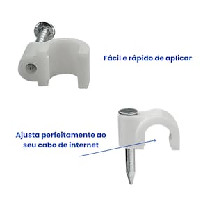 Com um design pensado para facilitar a aplicação, o grampo possui um diâmetro de 5 milímetros, ideal para cabos coaxiais e outros tipos de fios que necessitam de fixação segura. Seu material, além de ser resistente, permite uma instalação rápida e eficaz, atendendo àqueles que buscam praticidade em suas atividades. Este produto é essencial para eletricistas, técnicos de redes e para quem deseja manter a organização do sistema elétrico ou de comunicações em casa ou no trabalho.