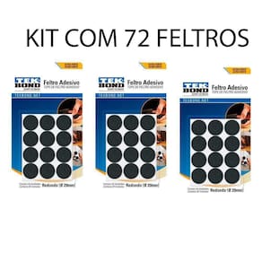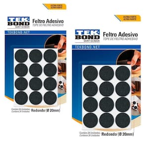 DescriçãoAlta qualidade e resistência, desenvolvidos para proteção contra riscos e batidas em pisos, móveis etc. Kit contém 6 cartelas com 72 peças redondos 20 mm Redondos: 20 mm;Contém: 72 unidades DetalhesO feltro protetor adesivo super cola tekbond absorve o impacto de batidas ou quedas e previne problemas com riscos, protegendo objetos, pisos e diferentes superfícies com eficiência, de forma prática e rápida.1. Ideal para usar em móveis para proteger pisos delicados;2. Evitar deslizamentos, riscos e batidas causadas pela movimentação de móveis;3. Possui excelente aderência em diversas superfícies.EspecificaçõesMaterial à base de viscose e poliéster.Aparência: feltroEspessura: 5 milímetrosTeor de sólidos %: 100 %Temperatura de trabalho: - 20 a + 80cResistência ao cisalhamento, n/mm: 2,5 n/mm2Capacidade de peso: 25 mpa Características1. Limpe bem a superfície onde deseja aplicar o feltro protetor adesivo, certificando-se de que o local esteja livre de poeira ou qualquer tipo de oleosidade.2. Retire o filme protetor da peça do feltro.3. Tome cuidado para não encostar seus dedos na área com adesivo.4. Aplique o feltro no local desejado, pressionando o feltro para uma boa fixação. as imagens são meramente ilustrativas