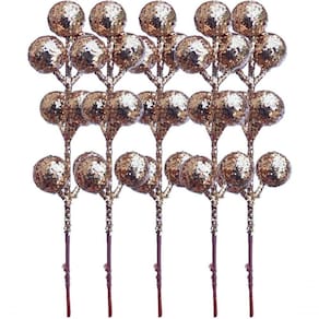 6 Conjunto Com 12 Frutas Artificiais Douradas De 18cm;