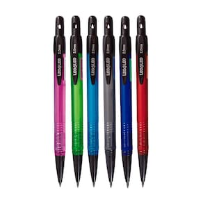 -marca: leo&leo -cores -possui apontador de mina. -material: resina termoplástica, grafite e metal. -grafite 2,0. Ideal para crianças que estão na fase inicial do uso de lapiseiras, grafite a ponta de lápis convencional, e para facilitar ainda mais, possui apontador para o grafite.