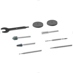 Itens que Acompanham: 02 Roda Impregnada de 1 - 25 01 Broca de diamante 1/16 Flipbit - 664DR 01 Mandril - 402 01 Ponta diamantada de 5/64 - 7103 01 Ponta de diamante de 5/64 - 7134 01 9/32 rebolo de carboneto de silício - 83142 01 3/16 rebolo de carboneto de silício - 84922 01 Chave