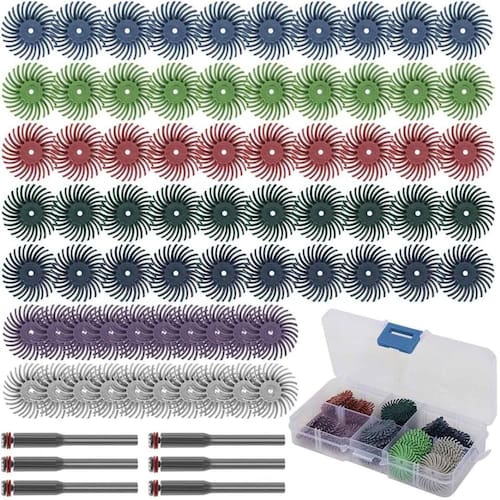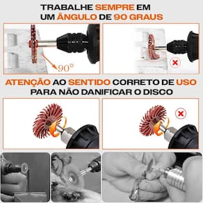 Kit 76 escovas de cerdas radiais lixa polimento para micro retíficas O kit de discos radiais para micro retífica com 76 peças é o conjunto ideal para quem busca acabamento perfeito, sem esforço e em qualquer tipo de material: metal, plástico, madeira, resina e até superfícies delicadas. Por que escolher este kit - grãos variados de abrasividade 80 a 2.500 - remove ferrugem, rebarba, tinta, resina e oxidação - rápida e fácil sem ferramentas - ideal para trabalhos de joalheria, artesanato, mecânica fina e modelismo - as escovas abrasivas radiais têm cerdas muito flexíveis, que permitem a remoção da camada superficial exterior sem danificar a camada de base abaixo - ótimo para polir pedra, madeira, alumínio, latão, bronze, aço carbono, ferro fundido, aço inoxidável e outros metais - a escova de cerdas radiais é indicada para metalurgia, preparação de tinta, revestimento e remoção de corrosão e muito mais - as cerdas flexíveis requerem menos pressão do que as escovas de aço e adaptam-se aos contornos, mesmo em peças complexas - nossos discos de polimento detalhados são adequados para rebarbação, limpeza, acabamento, usinagem e polimento de peças detalhadas, áreas minúsculas e locais irregulares - os discos de cerdas podem ser empilhados, flexíveis, frescos, duráveis e fornecem um acabamento uniforme. Use quantos discos forem necessários - acabamento fino em áreas de difícil acesso - alta durabilidade e desempenho constante O que você irá receber - 10 roda de polir com cerdas verde escuro grão 80 - 10 roda de polir com cerdas azul escuro grão 120 - 10 roda de polir com cerdas vermelho grão 220 - 10 roda de polir com cerdas azul claro grão 400 - 10 roda de polir com cerdas roxo grão 600 - 10 roda de polir com cerdas verde claro grão 1.000 - 10 roda de polir com cerdas cinza grão 2.500 - 6 suporte para discos haste 3mm - 1 estojo plástico Aplicações indicadas - polimento e brilho de metais - limpeza de soldas e pontos de corrosão - acabamento em impressões 3d - restauração de peças delicadas - ajustes precisos em madeira e acrílico 1. Serve em qualquer micro retífica ou dremel Sim, o kit é compatível com todos os modelos que utilizam hastes padrão de 3mm. 2. As lixas são reutilizáveis Sim, possuem alta durabilidade e podem ser utilizadas várias vezes dependendo da pressão e material trabalhado. 3. Quais materiais posso lixar com segurança Madeira, metais, plásticos, acrílico, resina, cerâmica, alumínio e latão. 4. Qual a rotação ideal de uso Funciona melhor entre 5.000 a 15.000 rpm, evitando o desgaste excessivo e superaquecimento. 5. Os grãos são identificáveis Sim cada cor representa um grão diferente, variando do mais abrasivo ao mais fino para acabamento. 6. Posso usar para restaurar joias ou objetos antigos Sim é ideal para trabalhos de precisão, como restauração de peças delicadas, sem riscar ou agredir o material. 7. Dá pra usar em madeira ou resina Sim são excelentes para polimento de peças em madeira, resina epóxi e até cerâmica. A dremax é a primeira e única marca brasileira dedicada exclusivamente às micro retíficas, acessórios e acoplamentos para esta indispensável ferramenta. Seja para trabalhos de precisão, artesanato, modelagem ou reparos, a dremax tem o produto certo para você.