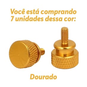 Kit 7x parafuso para pc gamer colorido gabinete computador Cor: dourado Apresentamos o parafuso colorido gamer em liga de alumínio - o toque perfeito de estilo e funcionalidade para elevar o seu setup projetado especialmente para os entusiastas de jogos e criadores de conteúdo que buscam personalizar cada detalhe do seu espaço de jogo, este conjunto de parafusos oferece mais do que apenas fixação; ele é uma declaração de personalidade.