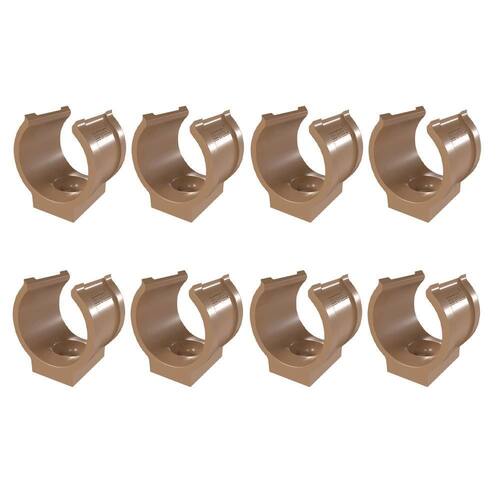 Informações técnicas: Cor: Marrom Composição: Polipropileno PP Para cano/tubo de: 20mm 1/2'' Rápida fixação: utiliza apenas um parafuso com bucha Não enferruja Não necessita regulagem Fácil fixação do tubo através de simples encaixe Utilizado em posições verticais e horizontais