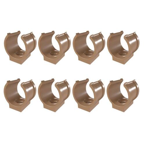 Informações técnicas: Cor: Marrom Composição: Polipropileno PP Para cano/tubo de: 25mm 3/4'' Rápida fixação: utiliza apenas um parafuso com bucha Não enferruja Não necessita regulagem Fácil fixação do tubo através de simples encaixe Utilizado em posições verticais e horizontais