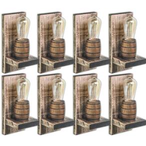 Kit 8 Arandela Barril Delenha Decor Madeira Maciça Rústico