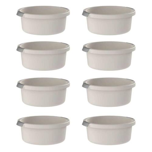 Kit 8 Bacias Flow OU 5L Bege com Pega Ergonômica Lavanderia Cozinha Limpeza.
