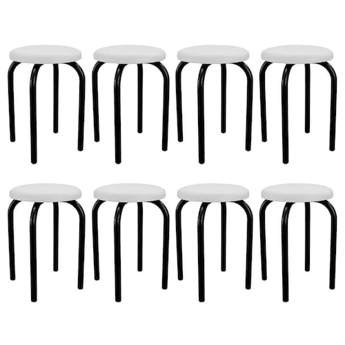 Altura: 1 | AssemblyRequired: Sim, sugerimos a contratação do nosso serviço de montagem (para os CEPs em que o serviço está dispon | Color: BrancoPreto | ColorFamily: BrancoPreto | ColorSimple: BrancoPreto | ColorSupplier: BrancoPreto | Gênero: Unisex | Largura: 1 | Manual: Sim | Marca: Mpozenato | Material: Mpozenato | MaterialFamily: Aço carbono | Model: Maviê | Origem: | OriginCountry: | OriginState: PR | Peso: Não | Peso Suportado: 120 kg | ProductContents: 8 Banquetas | ProductHeight: 45 | ProductInstructions: Produto para uso em ambiente interno, nao devendo ficar exposto ao sol, calor e umidade excessivos. | ProductLength: 26 | ProductWarranty: 90 dias após o do produto | ProductWeight: 4 | ProductWidth: 26 | Profundidade: 8 Banquetas | Requere montagem: Sim | SizeDescription: 45 x 26 x 26 cm | SupplierSimpleName: Kit 8 Banquetas Baixas Empilháveis em Aço Maviê Sintético BrancoPreto - Mpozenato | Tipo de Garantia: Fabricante