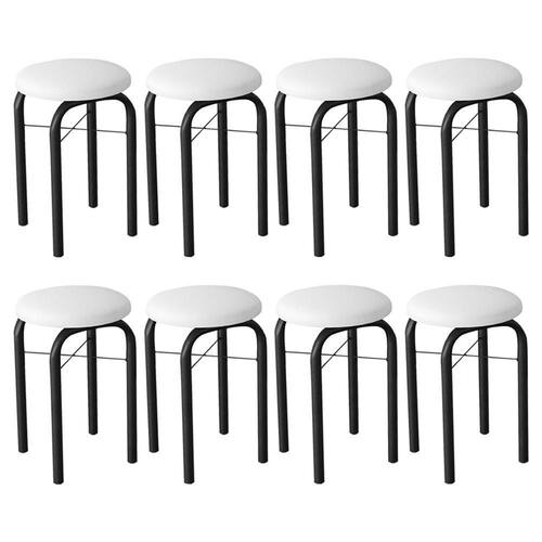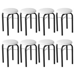 Nem sempre temos assentos extras quando recebemos visitas, mas, isso vai mudar, vem conhecer o Kit 8 Banquetas Baixas para Cozinha em Aço Manu Sintético I01 Preto/Branco, da Mpozenato!
