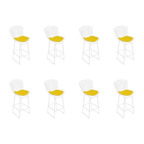 AS IMAGENS SÃO MERAMENTE ILUSTRATIVAS E PODEM SOFRER VARIAÇÕES DE COR E PEQUENOS DETALHES DE ACORDO COM O SEU MONITOR, ILUMINAÇÃO DO AMBIENTE E ATÉ MESMO A SUA PERCEPÇÃO VISUAL.Kit 8 Banquetas Bistrà Bertoia Branca D70 com Assento Amarelo