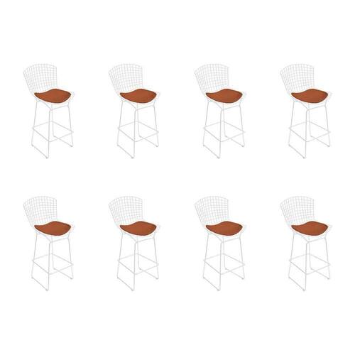AS IMAGENS SÃO MERAMENTE ILUSTRATIVAS E PODEM SOFRER VARIAÇÕES DE COR E PEQUENOS DETALHES DE ACORDO COM O SEU MONITOR, ILUMINAÇÃO DO AMBIENTE E ATÉ MESMO A SUA PERCEPÇÃO VISUAL.Kit 8 Banquetas Bistrà Bertoia Branca D70 com Assento Cobre