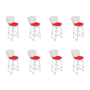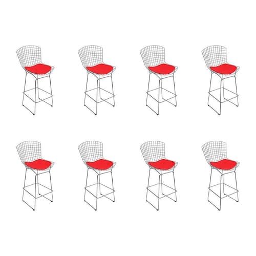 AS IMAGENS SÃO MERAMENTE ILUSTRATIVAS E PODEM SOFRER VARIAÇÕES DE COR E PEQUENOS DETALHES DE ACORDO COM O SEU MONITOR, ILUMINAÇÃO DO AMBIENTE E ATÉ MESMO A SUA PERCEPÇÃO VISUAL.Kit 8 Banquetas Bistrà Bertoia Cromada D60 com Assento SintÃtico Vermelho