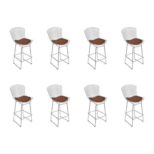 AS IMAGENS SÃO MERAMENTE ILUSTRATIVAS E PODEM SOFRER VARIAÇÕES DE COR E PEQUENOS DETALHES DE ACORDO COM O SEU MONITOR, ILUMINAÇÃO DO AMBIENTE E ATÉ MESMO A SUA PERCEPÇÃO VISUAL.Kit 8 Banquetas Bistrà Bertoia Cromada D70 com Assento SintÃtico Marrom