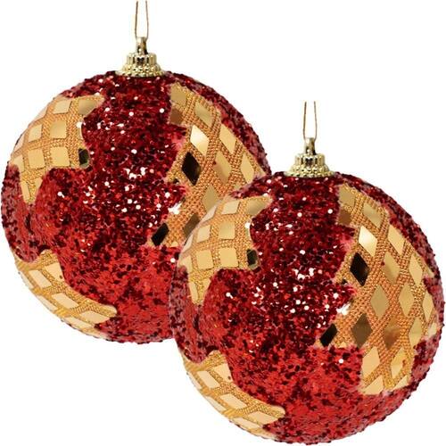8 Kit Bolas Para Árvore De Natal Vermelha Com Glitter Dourado 80mm;