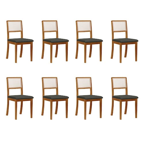 Kit 8 Cadeiras de Jantar Luxo Madeira Maciça Mel Encosto Telinha Palha Estofada Linho Bege Rubi