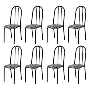 O Kit 8 Cadeiras 056 América Cromo/Preto Listrado - Artefamol, é uma excelente opção para complementar seu ambiente com estilo e qualidade, estrutura do tubo em aço carbono, acabamento em pintura epóxi, assento anatômico com revestimento de espuma e courvin. Deixe sua cozinha mais sofisticada com essas lindas cadeiras. Tá esperando o que? Leve já a sua!