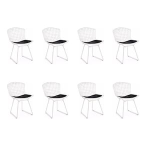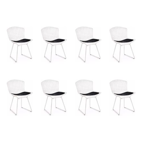 AS IMAGENS SÃO MERAMENTE ILUSTRATIVAS E PODEM SOFRER VARIAÇÕES DE COR E PEQUENOS DETALHES DE ACORDO COM O SEU MONITOR, ILUMINAÇÃO DO AMBIENTE E ATÉ MESMO A SUA PERCEPÇÃO VISUAL.Kit 8 Cadeiras Bertoia Branca com Assento Preto