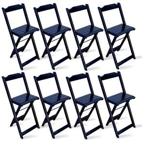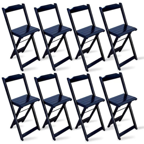 Kit 8 Cadeiras Bistrô Dobrável Madeira Preta - Cor: Preto
