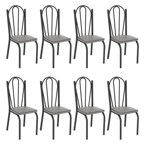 Kit 8 Cadeiras de Cozinha Alabama Estampado Platina Pés de Ferro Preto - Pallazio - Prata