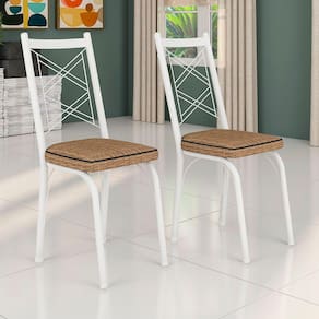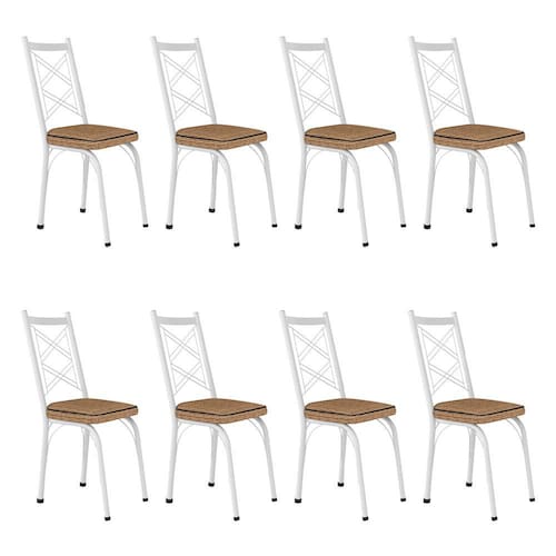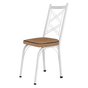 Kit 8 Cadeiras de Cozinha Delaware Estampado Rattan Bege Pés de Ferro Branco - Pallazio