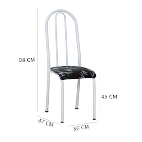 O estofamento estampado não apenas confere personalidade à cadeira, mas também proporciona conforto durante as refeições. Os pés de ferro garantem estabilidade e durabilidade, tornando-a uma escolha ideal para o ambiente da cozinha.