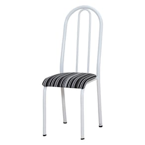 O estofamento estampado não apenas confere personalidade à cadeira, mas também proporciona conforto durante as refeições. Os pés de ferro garantem estabilidade e durabilidade, tornando-a uma escolha ideal para o ambiente da cozinha.