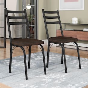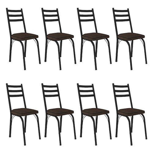 Kit 8 Cadeiras de Cozinha Luisiana Estampado Imbuia Pés de Ferro Preto - Pallazio - Marrom