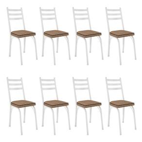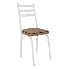 Kit 8 Cadeiras de Cozinha Luisiana Estampado Rattan Bege Pés de Ferro Branco - Pallazio