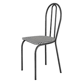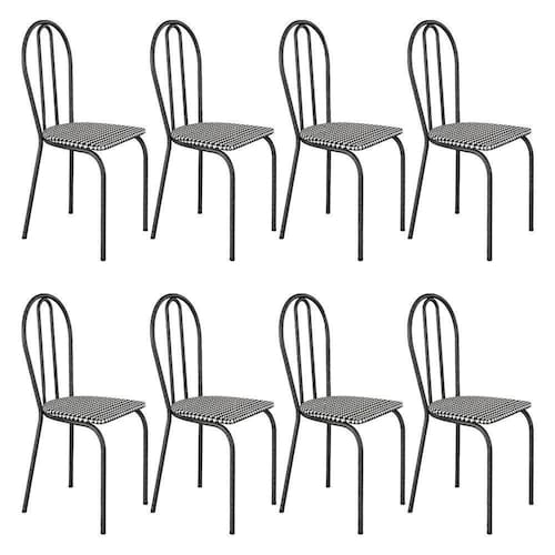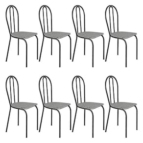Kit 8 Cadeiras De Cozinha Texas Estampado Channel Pés De Ferro Cromo Preto - Pallazio