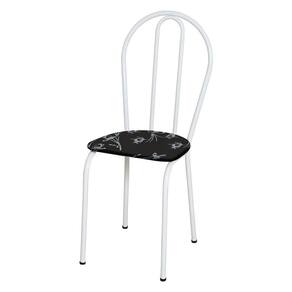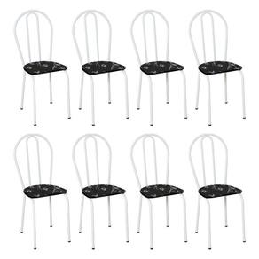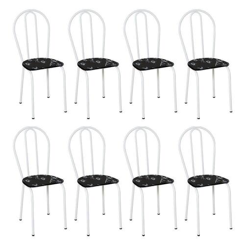 Kit 8 Cadeiras De Cozinha Texas Estampado Preto Florido Pés De Ferro Branco - Pallazio