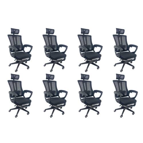 A limpeza pode ser realizada com um pano úmido e detergente neutro, preservando a estrutura e o acabamento em tela Mesh, garantindo a durabilidade e a elegância da cadeira.